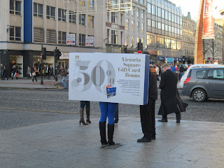Perjantaina 30.11. lähettiin sitten taas Annin kanssa Dubliniin 5 päiväksi minkä aikana tehtiin päiväreissu Belfastiin. Meillä oli Ryanairin lennot East Midlandsin kentältä (mikä on Nottinghamissä) ja tä oli niin mielusa kokemus että en enää ikinä lennä Ryanairilla! Sainpahan ainakin ihmiset huvittuneeks ku tungin täpötäyteen laukkuuni käsilaukkuani sisältöineen ku en saanu molempia ottaa. Heitin 12 sentin koron jalkaa koska ne vei enemmän tilaa ku mun nauhakengät minkä lisäks tungin taskut täyteen tavaraa...että oli mukavaa! No perille päästiin huvittuneessa ketutuksessa ja löydettiin jopa bussikin kentältä hostellille. Päivä oli ollu sen verran pitkä että lueskeltiin vähän esitteitä hostellilla ja mentiin nukkumaan.