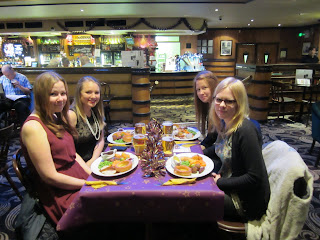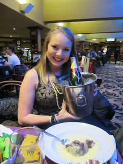 Maanantaina vietettiin sitten tyttöjen kanssa "vikaa" iltaa yhessä ja oltiin varattu meiän vakkari pubista jouluillallinen. Jouluillalliseen Englannissa kuuluu paahdettua kalkkunaa, Yorkshire puddingia, herneitä, porkkanaa ja paitettuja perunoita. Jälkkäri jouluna täällä on Christmas pudding. Kyseinen illallinen ei kuulunu mihinkään mun lemppareihin ja ihan kaikkee ei tullu ees syötyä! Otettiin vielä ruuan päätteeks pullo samppanjaa vaihdolle, uusille ystäville, Englannille, joululle ja mun valmistumiselle. Aivan mahtavan syksyn on saanu täällä viettää ja on todelle haikeeta että aika täällä loppuu! Englanti on tosissaan vieny mun sydämen ja Lincolnista on tullu mun koti! <3