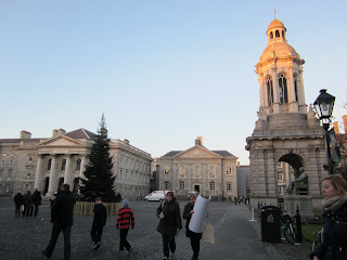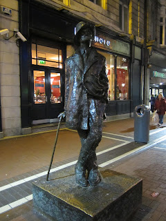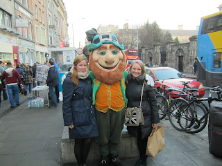Lauantaina mentiin sitten aamusta kiertoajelulle minkä jälkeen oltiin sellasessa syväjäässä (istuttiin ulkona) että mentiin syömään ja lämmittelemään. Ruuan jälkeen kierreltiin vähän kaupunkia. Käytiin kattomassa mm. Trinity College, Molly Malones patsas ja Dublinin linna. Tän jälkeen mentiinki sitte laittautumaan hostellille koska illalla kutsu Pub Crawl eli pubikierros (tai pubikonttaus!). Kyseinen konttaus makso 12e mikä piti sisällään ilmasen tuopin, sisäänpääsyn yökerhoon jonon ohi ja tarjouksia pubeissa. Kierros piti sisällään 5 pubia ja yhen yökerhon ja tästä ku lasketaan 1+1 niin sunnuntaina ei ollu hyvä olo... Sunnuntai oli siitäkin hieno että unohdin yöllä takkini yökerhoon, minkä takia ei voitu poistua hostellilta mihinkään koko päivänä, ennen ku kello oli 23 ja sain takin takas yökerhosta. Miten takin voi unohtaa yökerhoon? No jos joku haluu joskus kokeilla samaa ni mä voin opettaa! No jotain hyvää ni vietettiin tä sunnuntai hostellilla kokeeseen lukemiseen!