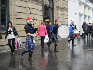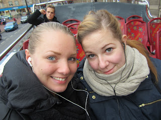 Viiminen reissu! Niin se aika vaan käy vähiin ja nyt viikonloppuna oltiin Annin kanssa vikalla reissulla Skotlannin pääkaupungissa Glasgow'ssa. Oltiin perillä myöhään perjantai-illalla joten mentiin aikalailla suoraan vaan nukkumaan. Lauantaina alotettiin taas päivä kiertoajelulla minkä jälkeen sai mennä taas sulattelee syväjäätä lounaanmerkeissä. Ku varpaissa oli taas tuntoa niin lähettiin kaupungille kävelee ja shoppailemaan. Törmättiin matkalla aivan mahtavaan poika trioon jotka soitti rumpuja ja säkkipilliä ja tanssi samalla! Katteltiin poikia yhteensä tunti ihan haltioissa ja naurettiin kippurassa niitten lantionkeikutuksille. Sain ostettua muun muassa ittelleni valmistujaismekon ja kengät! Illalla käytiin vielä lähipubissa syömässä ja juomassa muutamat. Sunnuntaina jatkettiin samassa pubissa aamiaisella ja Manchester United vs Manchester City pelillä. Käytiin myös sanomassa Primarkille haikeet jäähyväiset ja sitten suunnattiinki jo takas kotiin. Olipas muuten epä-tapahtumarikas reissu! :D Reissun "kohokohta" oli se että oltiin onnistuttu matkailun ammattilaisina ostaa paluuliput väärälle päivälle ja jouduttiin ostaa uudet liput konnarilta junassa! :D Hyvä me!